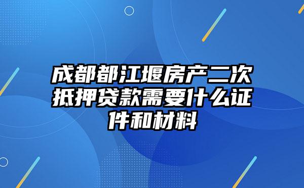 成都都江堰房产二次抵押贷款需要什么证件和材料