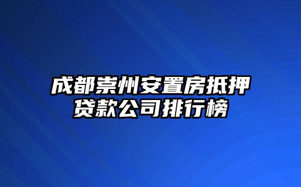 成都崇州安置房抵押贷款公司排行榜