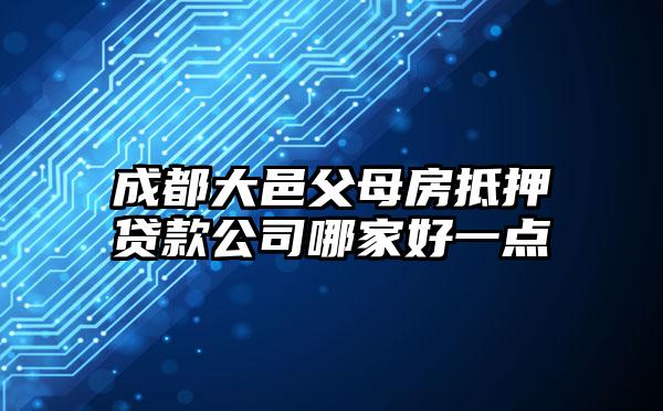 如果您在成都大邑地区想要进行父母房抵押贷款,那么选择一家合适的公司非常重要。目前市场上有很多这样的公司,那么哪家好呢?下面介绍几家口碑不错的公司,供您参考。
