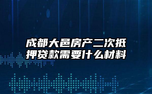 在日常生活中,我们很有可能需要申请贷款。在很多情况下,房产二次抵押贷款成了大家的选择,因为它具有利用自己的不动产来获取资金的优势,但是,申请这种贷款需要提供相关的材料。那么,成都大邑房产二次抵押贷款需要什么材料呢?
