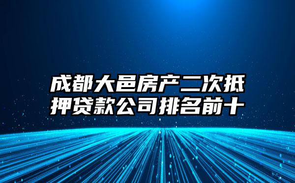 在成都大邑地区,许多人需要贷款来购买房产或满足其他资金需求。由于房产二次抵押可以提供更高的贷款额度,因此许多客户选择了这种贷款方式。在成都大邑地区,有许多房产二次抵押贷款公司。本文将介绍排名前十的公司以供参考。