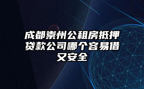 成都崇州公租房抵押贷款公司哪个容易借又安全?