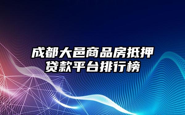 成都大邑商品房抵押贷款平台排行榜随着城市化进程的不断推进,房地产市场也在发展壮大。在成都市,大邑地区的商品房市场尤其火爆,同时也吸引了大量购房者的关注。面对房价...