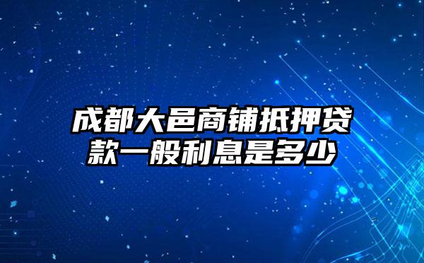 成都大邑商铺抵押贷款一般利息是多少成都是一个经济发达的城市,商铺抵押贷款是许多商家获得资金的一种方式。对于成都大邑商铺抵押贷款一般利息是多少这个问题,我们需要了...